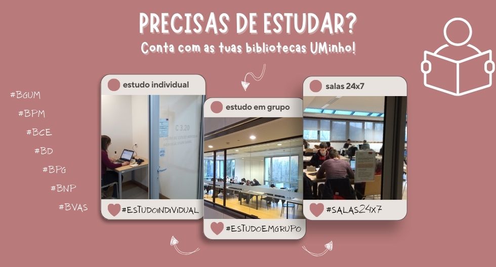 Conta com as nossas salas de estudo, na BPG e BNP em Azurém, e na BGUM, BD, BCE, BPM e BVAS em Gualtar: